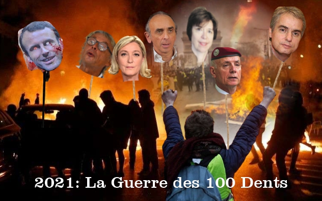 Il est temps de passer aux actes! Déclarons la guerre dans la rue à ces voleurs et salopards qui assassinent notre pays et nos compatriotes! Ce sera la Guerre des 100 dents … qui ne durera j’en suis sûr pas 100 ans! Montrons à nos ancêtres que nous aussi avons quelque chose dans le pantalon et sommes capables de mettre des têtes au bout de piques!