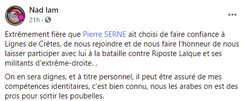 Bonjour tout le monde, c’est Marcel! Je viens d’en apprendre une bien bonne! Selon une harpie du harem de Pierre Serne (vous le connaissez, c’est le gars qui harcèle Riposte Laïque depuis des années et qui veut les « saigner » en multipliant les plaintes pour des raisons ridicules!) le 15 septembre « le directeur du site d’extrême-droite Riposte Laïque devra répondre en justice de quelques-unes des abjections proférées contre Pierre Serne depuis des mois. »!