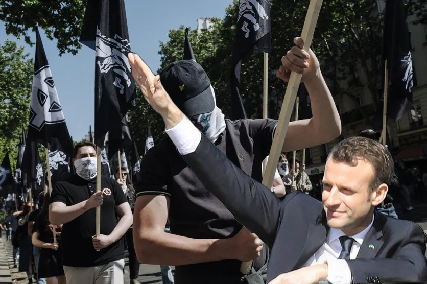 « Mais mon Marcel c’est pas les antifas qui font scandale, eux c’est la milice de Macron justement, ils les laissent tranquiles! Ici c’est des patriotes un peu virulents qui ont effrayé les ploucs de la grande ville, tous des bobos à moitié pédés quand c’est pas complètement, normal qu’ils ont eu peur. Tu confonds tout, la photo c’est Macron qui fait un salut nazi mais pas dans la manifestation, c’était une autre fois ».