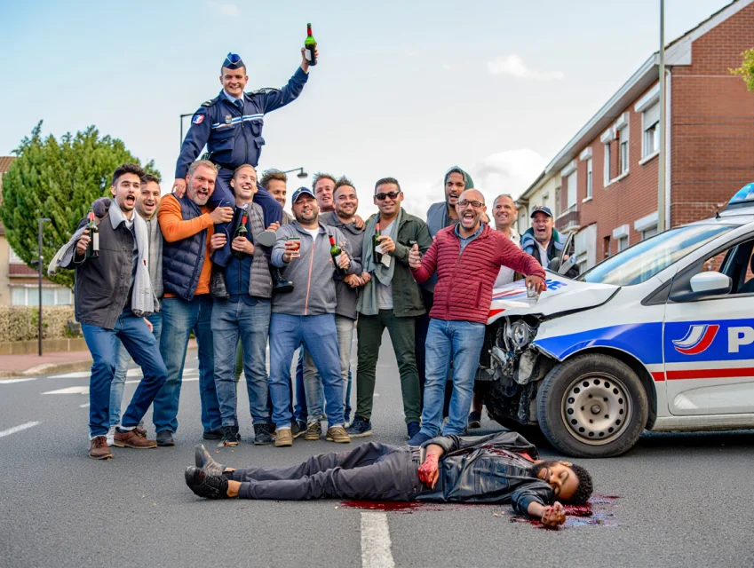 Alors j’ai appellé mon petit neveu Marco, vous savez, celui qui est dans la police. Il m’a dit qu’il ne faut pas s’inquiéter, il y a une enquête pour homicide involontaire mais, comme il m’a esspliqué, dans ces cas là on dit toujours que c’est pas volontaire sinon les juges rouges qui défendent les pourritures, ben ils jettent le policier en prison ! Ça nous a rassuré et on a donc décidé de préparer une déclaration pour décerner la médaille du Village à ce policier.