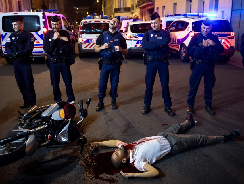 5. C’est bien ce que je dis : une racaille de moins c’est certes peu mais c’est toujours ça de pris. Alors c’est bien. On compte bien sûr sur le faux-cul sans-couilles de procureur pour écrouer… le policier ! Au pays de l’inversion des valeurs, les bourreaux ne sont pas ceux que vous croyez !