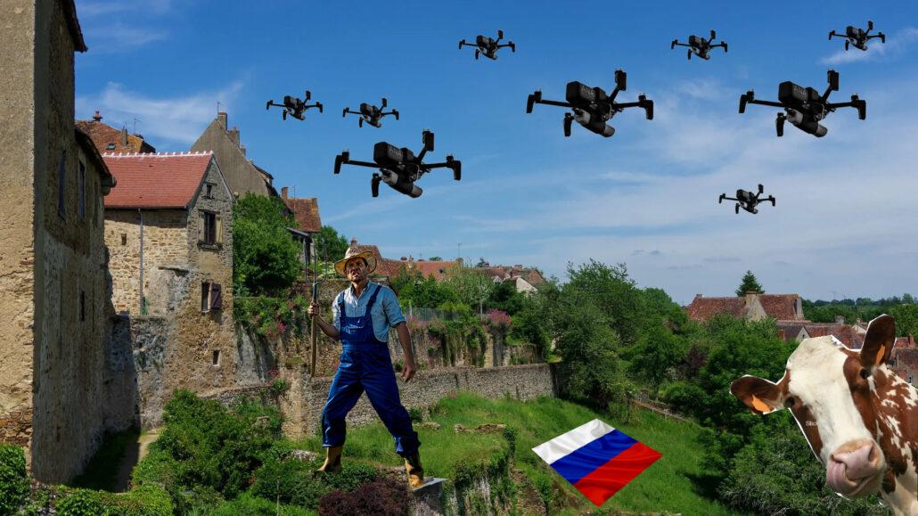 Alors on s’est tous rassemblés sur la place devant l’église et Antoine qui est toujours à l’écoute nous a esspliqué que partout en Europe y’a des drones qui surgissent, surtout vers les aérodromes. Les torche-culs disent que c’est des russes bien sûr mais y’a rien de prouvé.