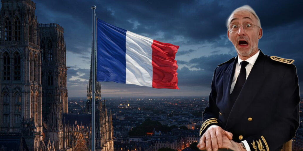 Le 4 octobre au petit matin les habitants de Rouen ont aperçu un drapeau au sommet du clocher de la cathédrale ! Alors tout le monde sait bien qu’il faut soutenir les pauvres gazaouis et que hisser le drapeau palestinien est un acte de résistance et de soutien, voyez par exemple à Grenoble c’est carrément sur la mairie que le maire a hissé fièrement ce drapeau. Mais là à Rouen c’était vraiment autre chose ! Les habitants étaient horrifiés, on entendait des cris de colère et des pleurs car figurez-vous que le drapeau était un drapeau français !