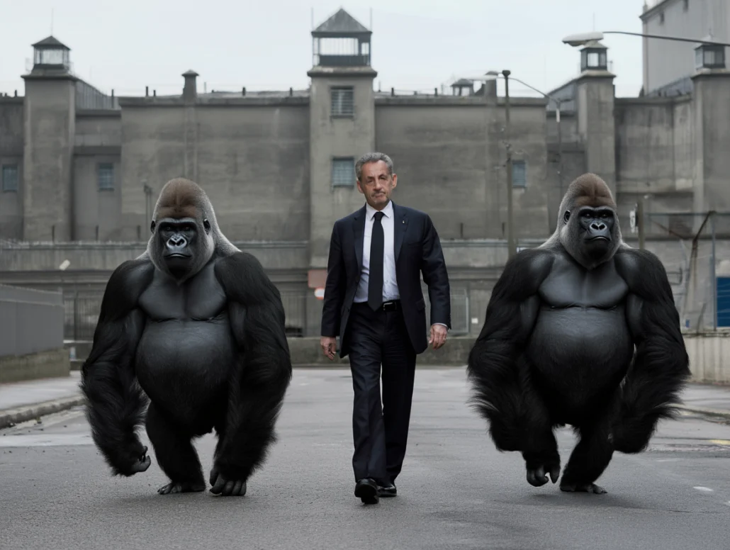 Enfin justement, c’est pas certain car j’ai appris que dans la cellule à côté de celle de Sarko, il y a 2 gendarmes du service de protection ! Et c’est pas une blague ! 2 gorilles donc pour s’assurer que Sarko ne glisse pas sur une savonnette sous la douche…